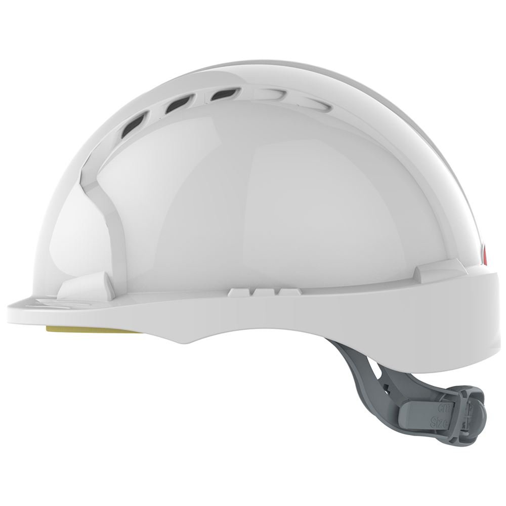 JSP helmets are safety hard hats made with durable High-Density Polyethylene (HDPE) shells, designed for impact and penetration protection, and feature comfort-enhancing elements like 6-pont terylene cradle harnesses for a secure, adjustable fit, and absorbent sweatbands. Many models offer features like ventilation slots, universal accessory slots for visors and ear defenders, and one-hand adjustment systems like the Revolution Wheel Ratchet, making them suitable for various industrial applications