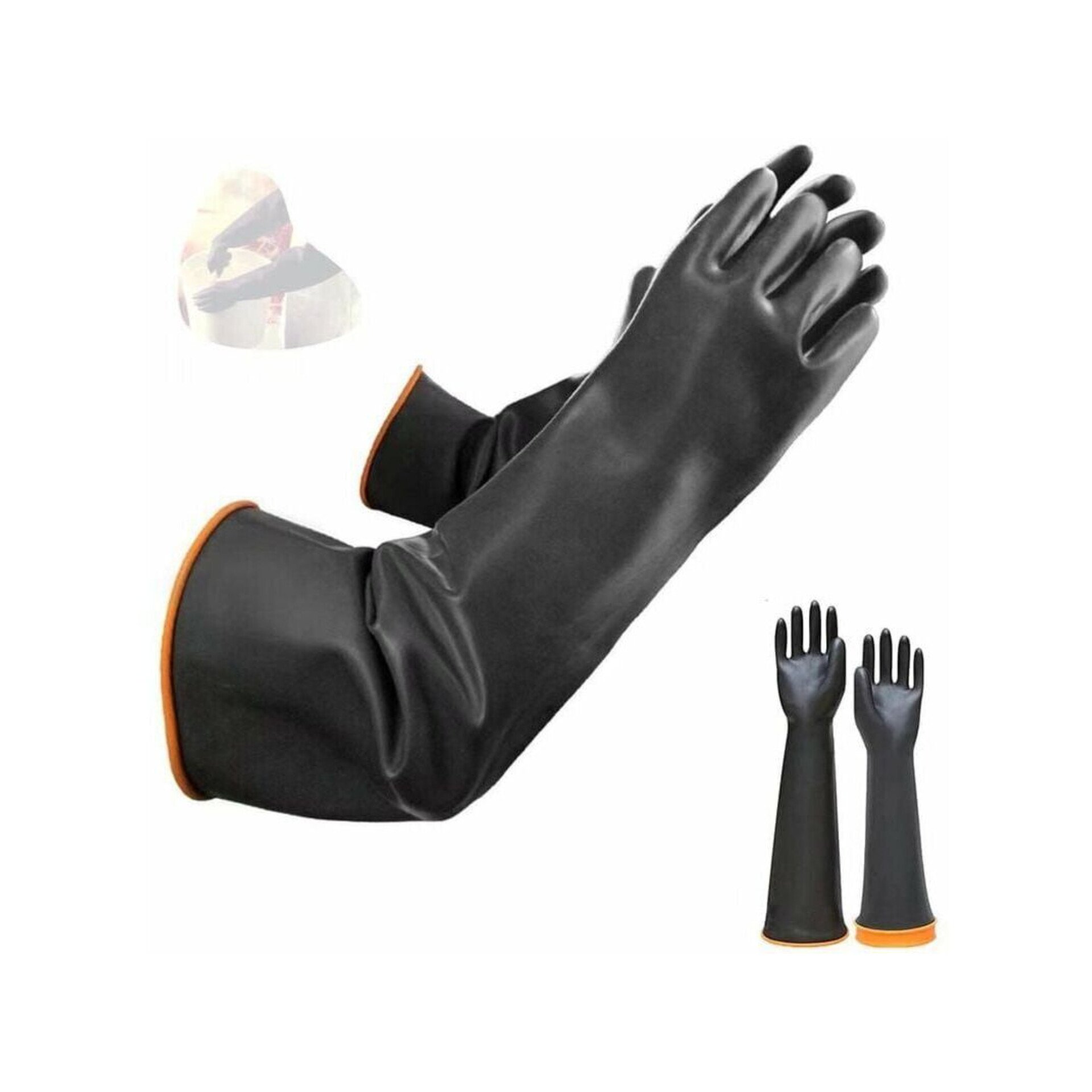 Chemical-resistant gloves are protective gloves made from materials like nitrile, neoprene, or butyl rubber that are designed to shield the wearer from hazardous chemicals by preventing chemical permeation, penetration, and degradation. The effectiveness of these gloves depends on their material, thickness, and specific chemical being handled, as no single glove material offers protection against all chemicals. Key performance factors include breakthrough time, degradation rate, and permeation rate, which are often standardized by regulations like EN ISO 374.